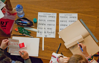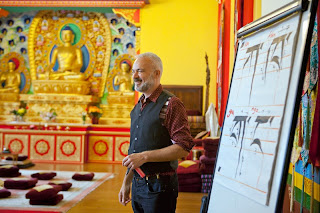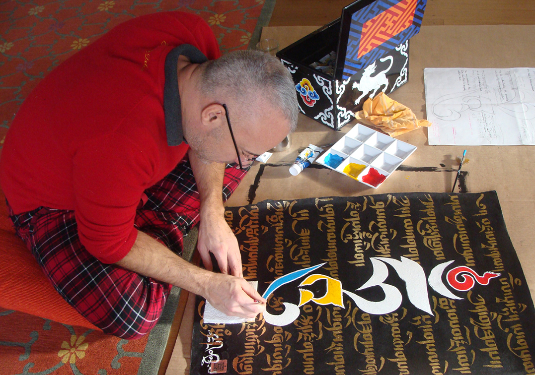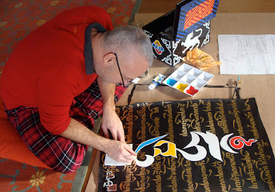 This is the second occasion Tashi Mannox has been invited to exhibit at the Calligraphy in Conversation event - this time showing one of his more major art-pieces called the Five Coloured Hum.